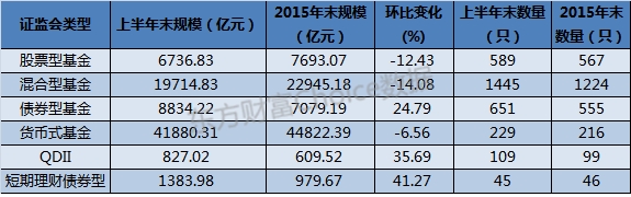 东方财富choice数据显示,截至6月30日,公募基金市场规模为79377亿元,比2015年末的84129亿元,缩水幅度5.65%。